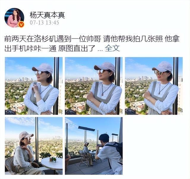 在7月13日,杨天真在自己的社交平台上晒出几张美照,并且还配文:在洛杉矶遇到一位帅哥,所以请他帮我拍照,而且原图直出,可见拍照技术是非常不错的,而背影照看起来也神似李现,众所周知,李现的拍照技术一绝,堪称是专业的摄影师级别了。